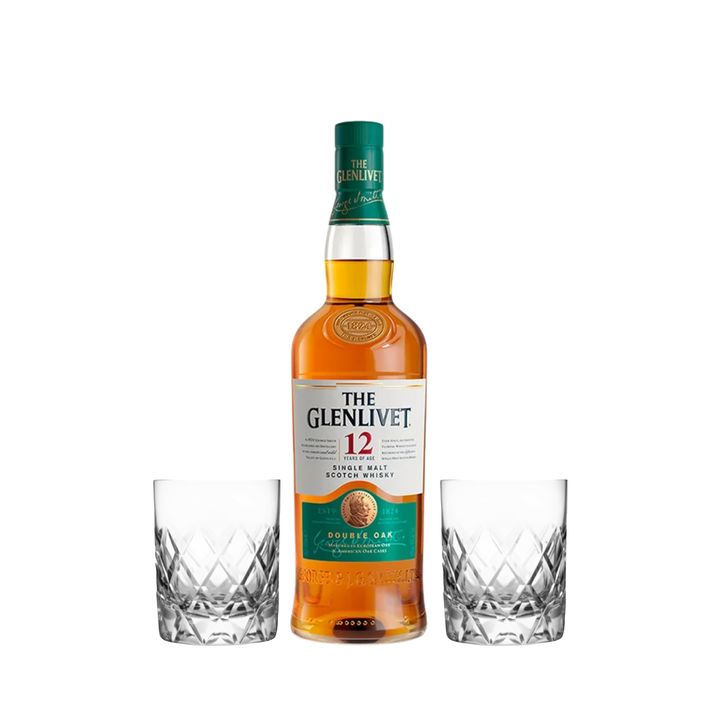 Set Whisky Glenlivet 12 Yo y 2 Vasos Tallados Con Estuche