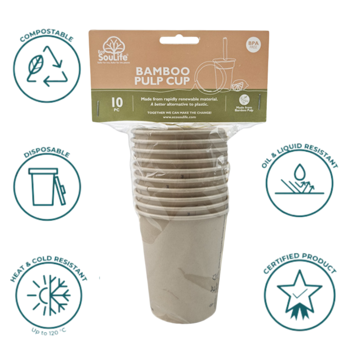 Set x 10 Vasos de Bambu Descartables Ecológicos aptos para Compost, Aptos para toda ocasión! ¡Consiéntete y cuida el planeta! Nuestros vasos de pulpa de bambú son la forma natural de beber, sin remordimientos. ¡Tan modernos que son prácticamente sostenibles! Y no se empaparán como otros vasos. Ya se...
