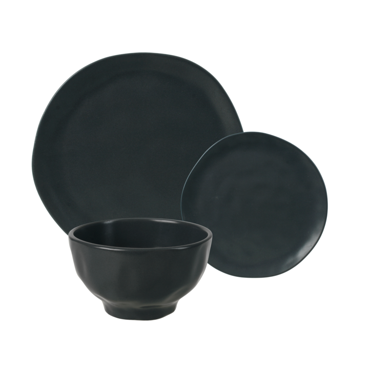 Set de vajilla modelo Organic compuesto por 12 piezas. Material: Cerámica esmaltada de alta resistencia. Espesor aproximado : 4 mm Set compuesto por : - 4 unidades de Plato Playo 25 cm Cerámica Irregular Organic Gris Mate . Medidas : Diamtero : 25 cms / Alto: 2 cm . - 4 unidades de Plato postre 20 c...