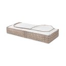 Set x 2 Organizadores bajo cama Medida : 46 x 107 x 16 (altura) cm. Con tapa transparente y cierre. No es rigido, no son duras ... la forma se la da cuando uno los llena en su interior, es decir, NO SON CAJAS FIRMES Y CON FORMA, sino, organizadores flexibles, de facil manipulacion , livianos, sin fo...