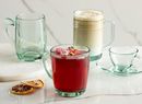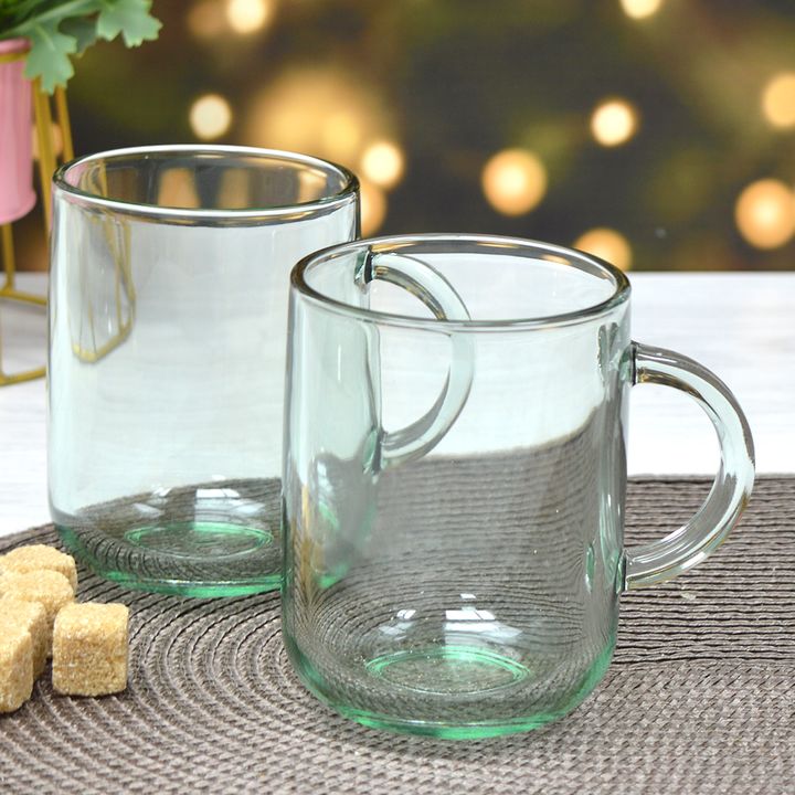 Set compuesto x 2 Tazas Jarros Mug con agarre ( manija) en Vidrio Reciclado Capacidad : 330 cc Ideal para Cafe con leche , te , limonadas , Tragos Medidas : Taza : Altura : 9,5 cms / Diametro boca : 7,5 cms / Diametro base : 7 cms Vidrio 100% Reciclado* Lleva la forma de la serie más preferida: Bási...
