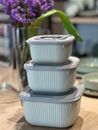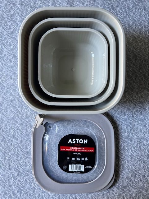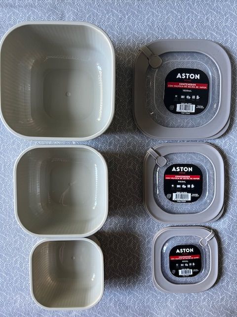 Set compuesto por 3 contenedores, tuppers plasticos con tapa. Cada contenedor tiene orifico en la tapa para permitir entrada y salida de aire en caso de desearlo. Son de la mas alta calidad en plastico idelaes para guardar todo tipo de alimento. Las medidas y capacidades son : 1- El mas grande tiene...