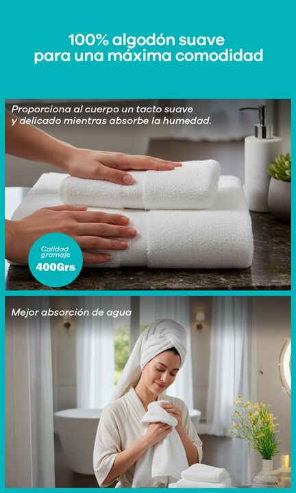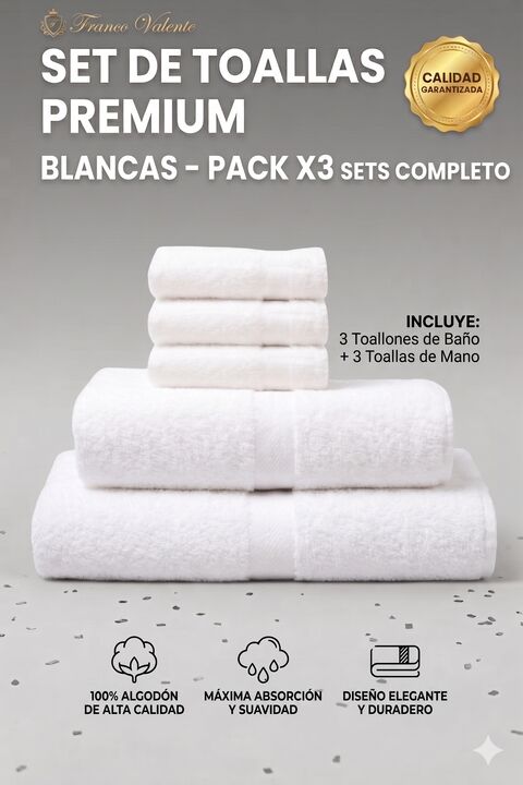 Equipá tu baño con la combinación perfecta de suavidad y practicidad. Con este Combo Exclusivo x3 Juegos Completos, llevas la calidad reconocida de Franco Valente a cada rincón de tu casa. La línea de 400 gramos es la favorita de quienes buscan una toalla liviana, altamente absorbente y, sobre todo,...