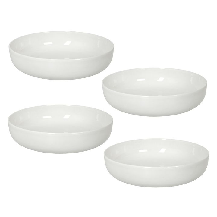 Set x 4 Bowl de 19,5 cms porcelana color Blanco Caracteristicas : 1 unidades de Bowl , recipiente , compotera de porcelana. Medida diametro : 19,5 cms .Altura del bowl : 5 cms. Color Crema . Apto para Lavavajillas y Microondas. Origen : Turquia
