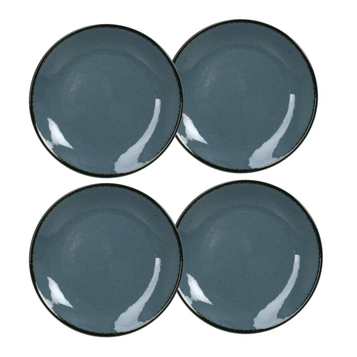 Set compuesto por: 4 Platos playos con filo envejecido rústico de porcelana Medidas Cantidad : 4 platos Diámetro : 25 cm Altura: 2,5 cm Consultar otras piezas en misma línea. Origen : Turquia ALGUNOS PLATO / BOWL TIENEN DETALLES DE TERMINACION EN EL ESMALTE Apto para Lavavajillas y Microondas.