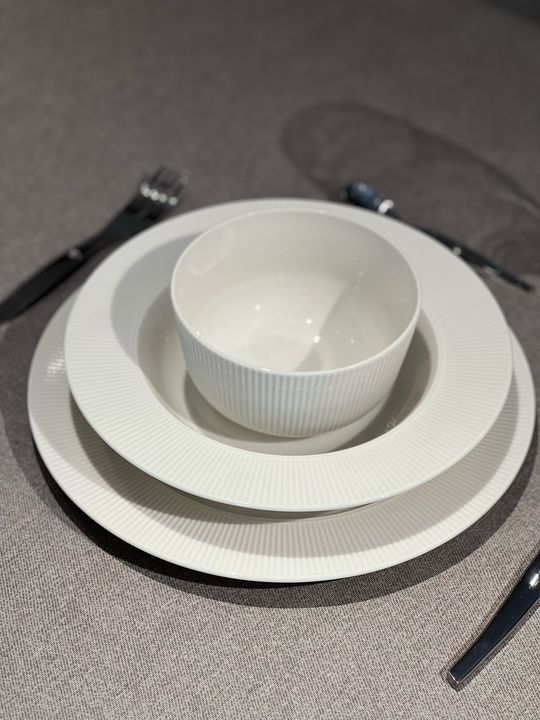 Set x 4 Platos Playo de 28 cm color Hueso Natural Linea OFA Medida : 28 cms de diametro Borde guarda de 4,2 cms con lineas Apto para Lavavajillas y Microondas. Color Hueso o. Natural Marca : Aston Origen : Turquia Elegancia y simplicidad en tu mesa. Este plato de porcelana blanca con delicada guarda...