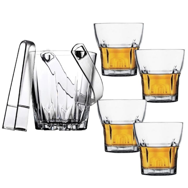 HIELERA EN VIDRIO PASABAHCE CON PINZA Elegante, clasica, util, un regalo unico !!! Pieza unica. Diametro : 12 cms. Altura : 13 cms Pinza y manija en plastico PVC mate. 4 VASOS WHISKY MODELO TEMPLE PRECIO X SET DE 4 VASOS VASOS DE WHISKY CAPACIDAD : 340 CC MEDIDAS : ALTURA 10 CM DIAMETRO BOCA : 10 CM...