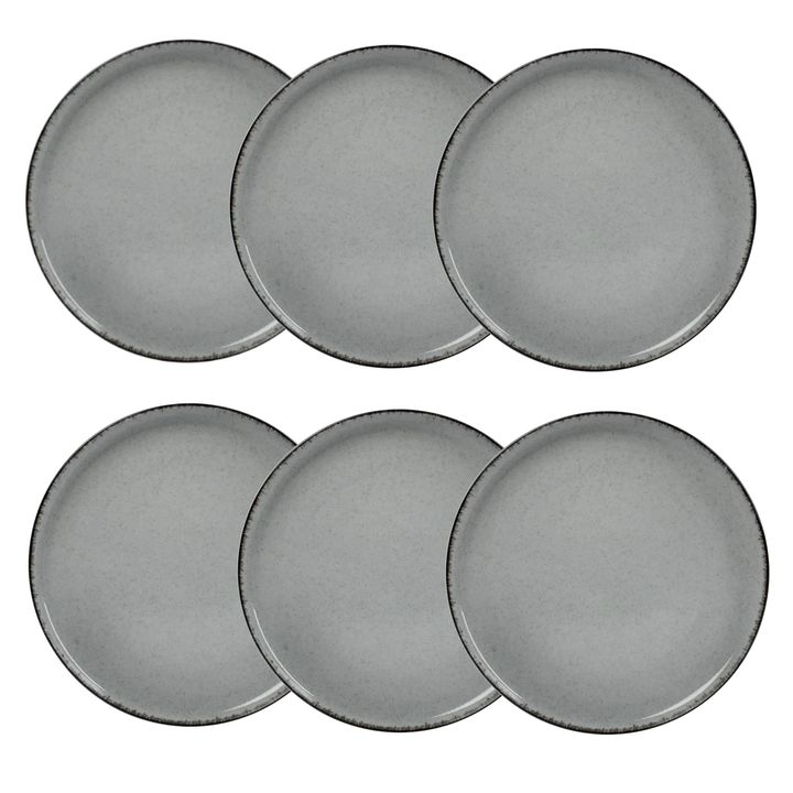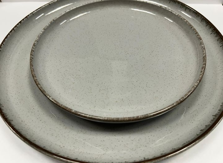 Plato playo con filo envejecido rustico con color irregular de porcelana Precio x 6 unidades Altura: 2,5 cm (Azul, verde, beige, Salmon, mostaza) Altura: 3 cm (bordo, gris, maiz) Medida : 27 cms Consultar otras piezas en misma linea Origen : Turquia Apto para Lavavajillas y Microondas. ALGUNOS PLATO...