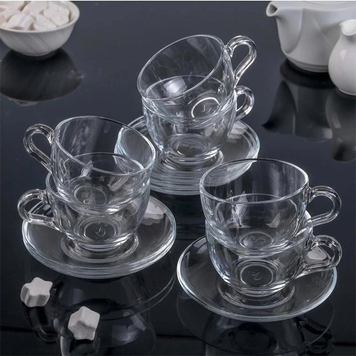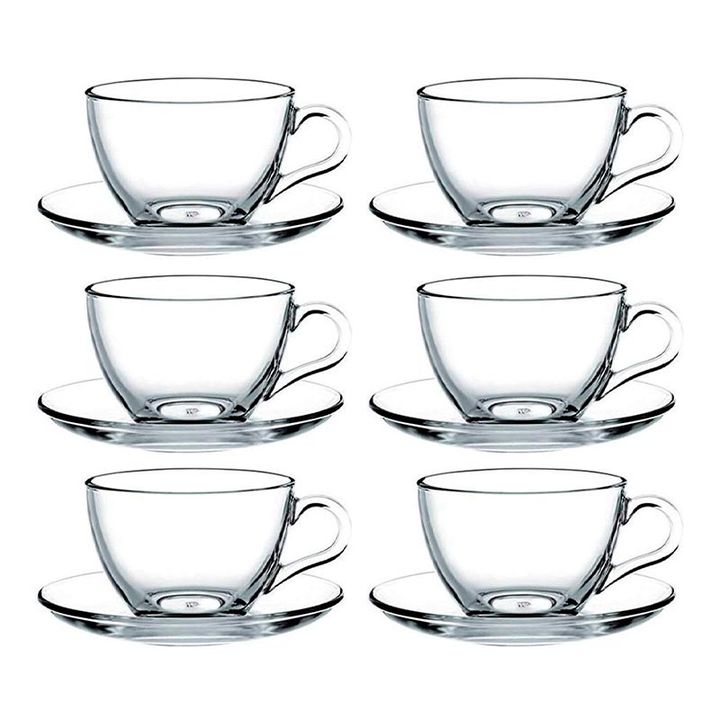 Set compuesto por 6 tacitas con plato en vidrio PASABAHCE Para cafe espresso , cortadito , son chiquitas Capacidad : 238 ml Tratamiento anti bacterial V BLOCK , previene el desarrollo de microorganismos en el vidrio. Si usted disfruta de su espresso por la mañana o por las tardes después de cenar co...