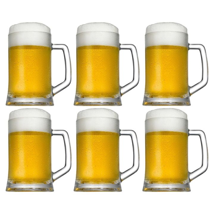 6 VASOS CHOPP CERVEZA CON MANIJA CAPACIDAD : 500 CC. ALTURA VASO : 14 CMS DIAMETRO BOCA : 8 CMS DIAMETRO DE LA BASE : 10 CMS CON MANIJA MARCA : PASABAHCE ORIGEN : TURQUIA Pasabahce, líder en la fabricación de vidrio de calidad, presenta su colección elegante y versátil de cristalería. Descubre la el...