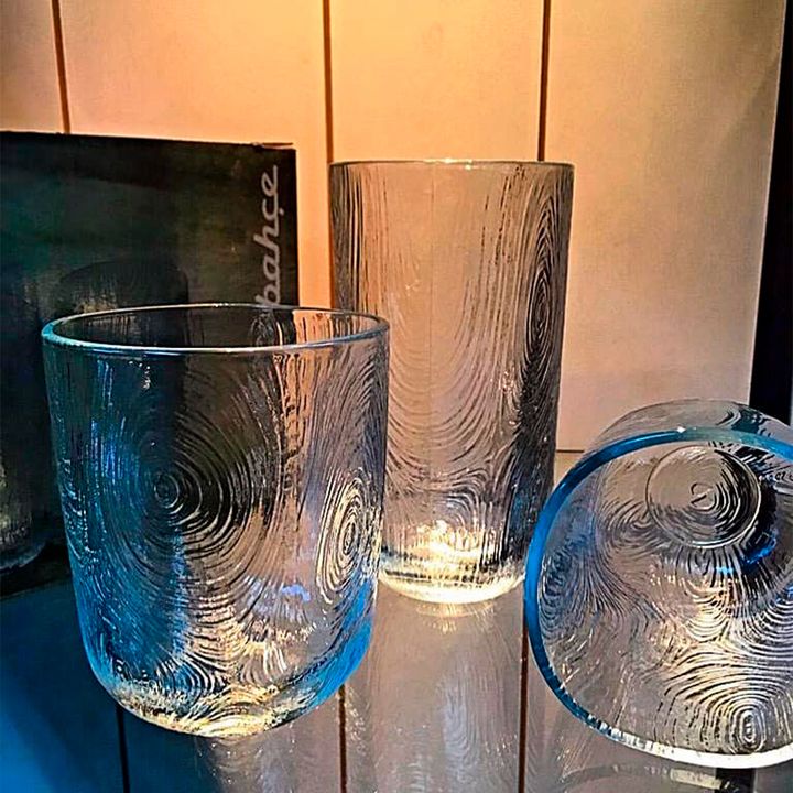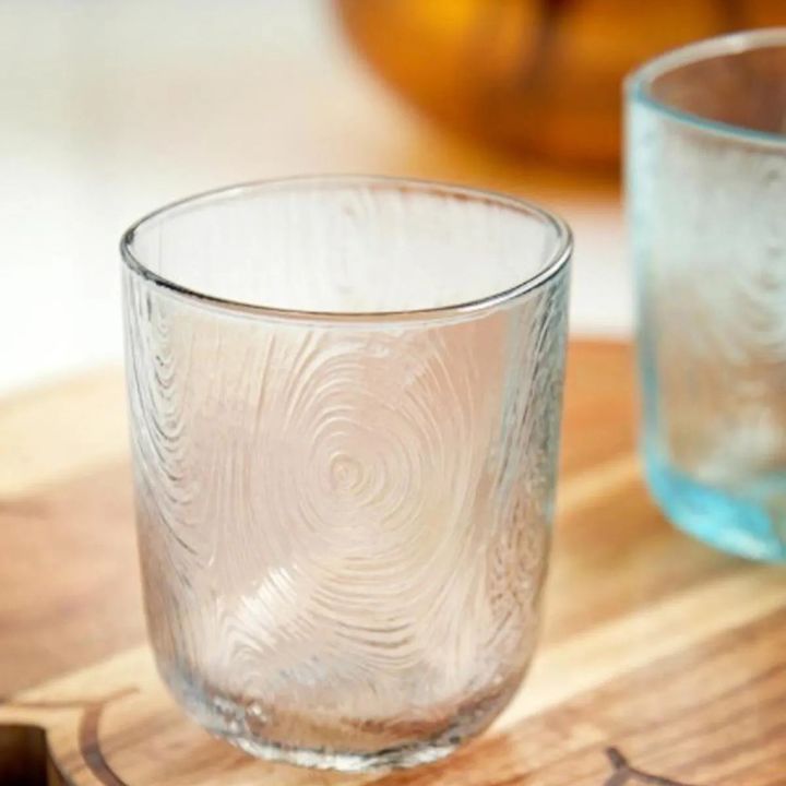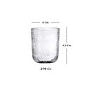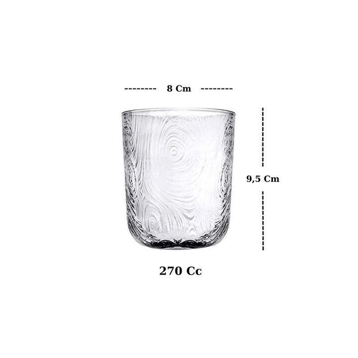 Set compuesto x 6 vasos Linden 270 cc Forma Irregular y Superficie exterior con textura Capacidad : 270 ml Medidas : 9 cm de alto Diámetro : 7,5 cm Diámetro base : 6.5 cm Origen: Turquia Marca : PASABAHCE