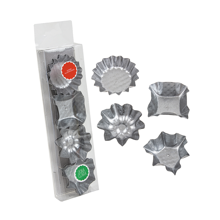 <p><em>- Material: Aluminio</em><br /><em>- Marca: Doña Clara</em><br /><em>- Origen: Argentina<br /><br /></em><em>Doña Clara ofrece este set de tarteletas con variados formatos y dimensioness para que te diviertas con tus recetas!</em></p>
