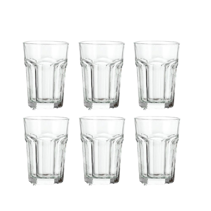<p><em>*Medidas</em><br /><em> Altura 12 cm</em><br /><em>Ancho 9cm Diametro 8.5 cm</em><br /><em>- Capacidad: 400 ml</em><br /><em>- Material: Vidrio</em><br /><em>- Marca: Crisa</em><br /><em>- Origen: Mexico</em><br /><br /><em>Este set incluye:</em><br /><br /><em>- 6u. de Vaso Vidrio New Y...