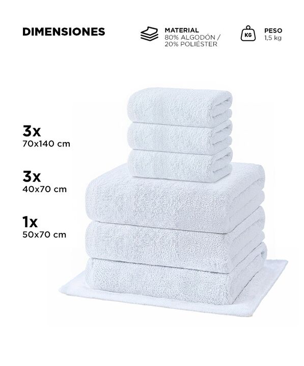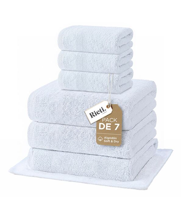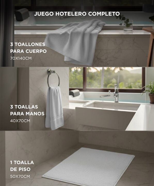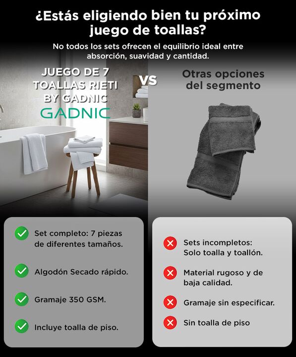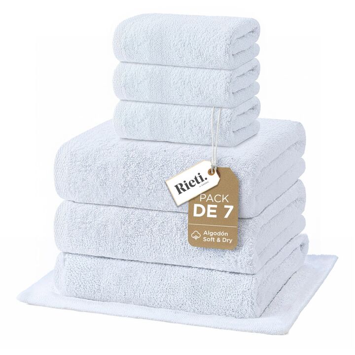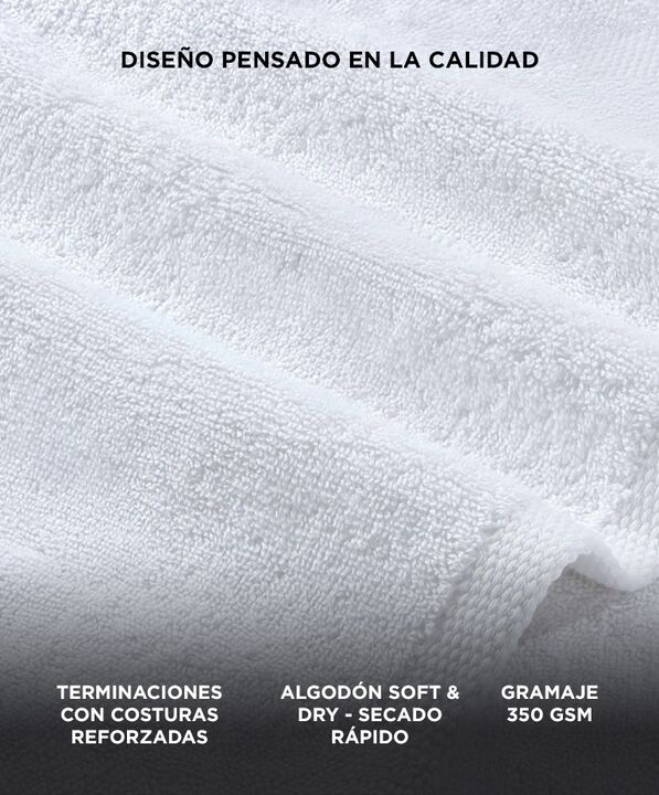 Absorción equilibrada para uso diario: El Juego de Toallas Rieti by Gadnic 350GSM ofrece una textura diseñada para absorber eficazmente sin resultar pesado. Ideal para baño cotidiano. Composición con alto contenido de algodón: Su mezcla 80% algodón y 20% poliéster mejora la suavidad y resistencia, m...