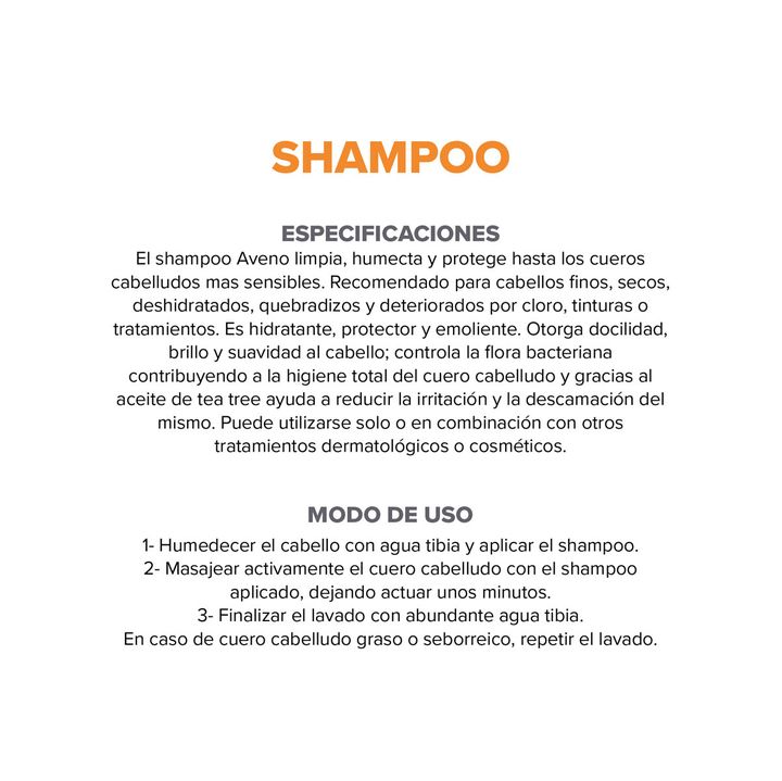 Shampoo Aveno Andrómaco avena piel sensible 250ml Shampoo Aveno limpia, humecta y protege el cuero cabelludo reactivo, los cabellos finos, secos, deshidratados, quebradizos y deteriorados por cloro, tinturas o tratamientos. Su acción terapéutica convierte al producto en hidratante, protector y emoli...