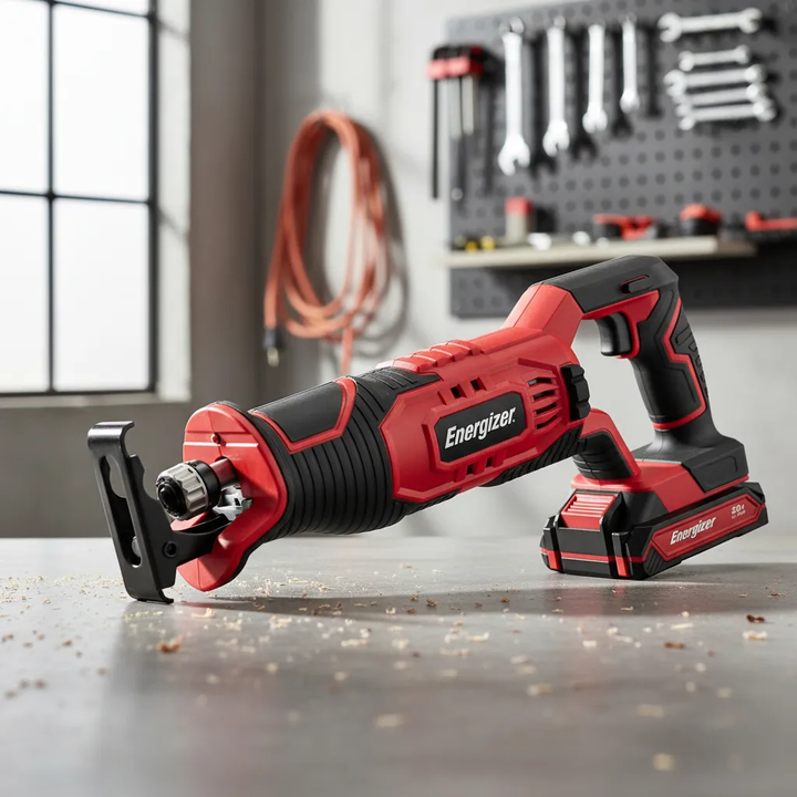 SIERRA SABLE INALAMBRICA ENERGIZER 1000W METAL MADERA ACERO La sierra sable de mano inalámbrica Energizer EZLRS78/K combina motor eléctrico eficiente y diseño ligero para cortes rápidos y precisos en madera, metal y materiales de construcción. Su movimiento oscilante de hoja de alta velocidad (hasta...