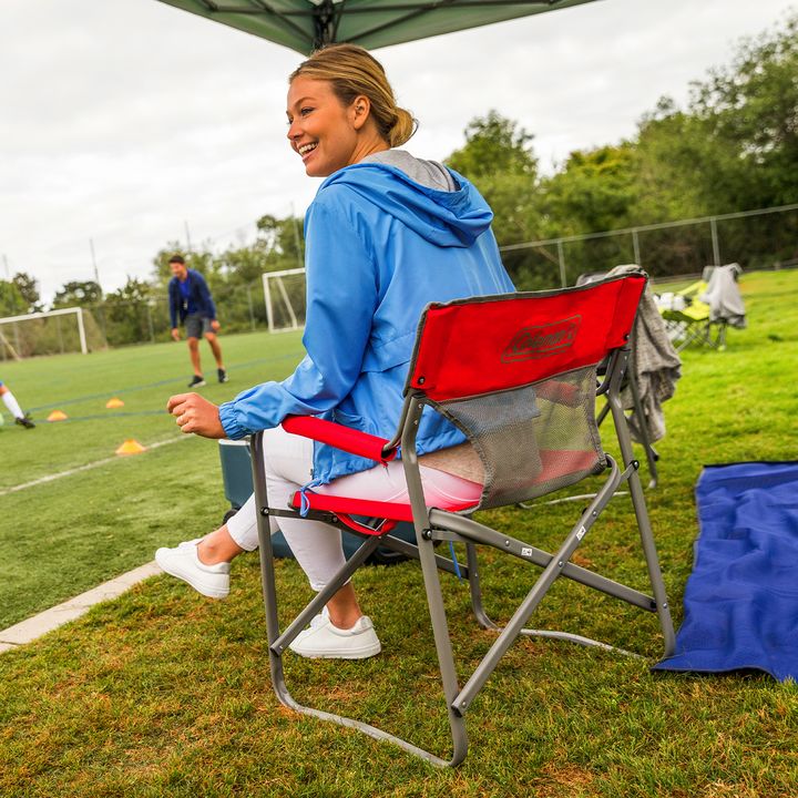 Transforme su terraza en una sala de estar con la Silla Coleman Director Breeze Steel Deck. El respaldo de malla permite que la brisa te refresque en los días calurosos, mientras que la posición de sentada y los sólidos brazos acolchados te permitirán relajarte cómodamente durante horas. El fuerte a...