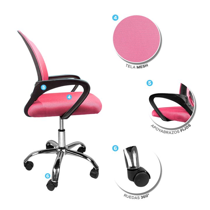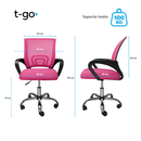 SILLA T-GO DE OFICINA CON SOPORTE LUMBAR FIJO -Apoya brazos fijos acolchonados reforzados -Recubierta de tela mesh respirable -Ergonómica -Construida sobre estructura metálica -Espuma de alta densidad recubierta en cuero ecológico -5 Ruedas de 2 pulgadas supersilenciosas -Mecanismo de balanceo -Dobl...