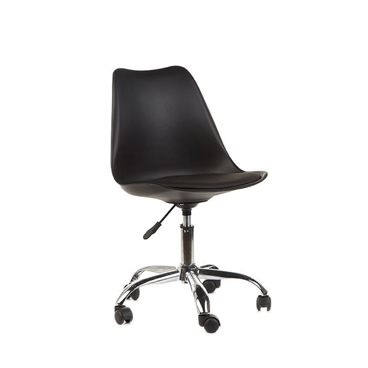 Silla de diseño escandinavo Tulip Neumática Regulación de altura neumática y estrella de 5 ruedas. Casco Tulip con almohadón de eco cuero Giratoria Medidas de la silla: Alto total 86cm Profundidad del asiento 40cm Altura asiento al piso: 51 cm (Varía según algunos cm bajes o subas la silla) Ancho de...
