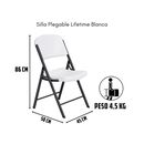 SILLA PLEGABLE LIFETIME LFT02810 BLANCA Marca:Lifetime Código: LFT02810 Producto: Silla De Camping Plegable Lifetime. Modelo: LFTO2810. Ventajas: Silla de polietileno de alta densidad, liviana y de gran firmeza. El sistema de plegado hace que sea muy simple guardarla en un ropero, debajo de la cama ...