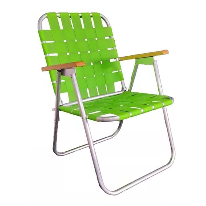 Sillón fijo. Estructura de aluminio 7/8. Tiras de cinta. Brazos de madera. COLORES SUJETOS A DISPONIBILIDAD.