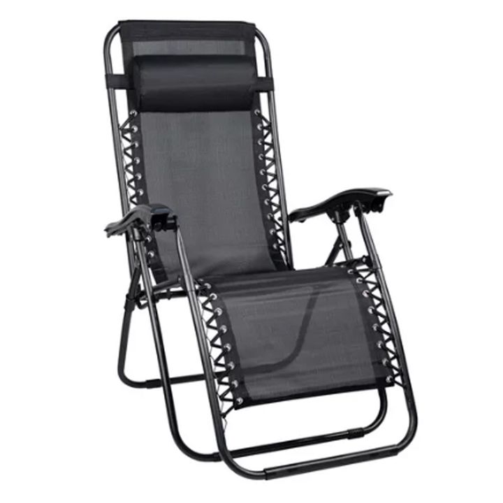 Reposera Reclinable. Plegable De Gravedad Cero. Estructura caño acero 7/8`. Espesor 1,2 mm. Terminación: Pintura Epoxi Negra. Tela: Textileno Negro. Peso máximo soportado: 100 kg. Medidas sin embalaje: Alto 108 x Ancho 65 x Profundidad 160 cm