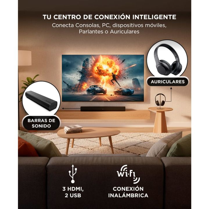 Resolución FHD para una experiencia visual inmersiva El Smart TV Gadnic 50” FHD ofrece una calidad de imagen excepcional gracias a su resolución 3840x2160 píxeles y panel CSOT de alto contraste (5000:1). Con un ángulo de visión de 178°, disfrutá de tus series y películas favoritas desde cualquier lu...