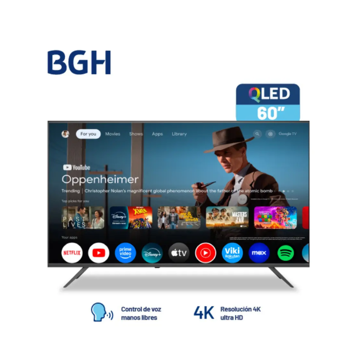 El Smart TV BGH 60” QLED B6026US7G es un modelo que destaca por su pantalla QLED de 60 pulgadas con resolución 4K Ultra HD, capaz de ofrecer colores intensos y contrastes profundos gracias a la compatibilidad con HDR10 y Dolby Vision. Su sistema operativo Google TV brinda acceso directo a las princi...