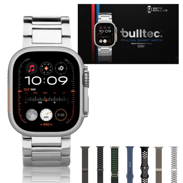 7 mallas intercambiables (2 premium metalicas) Funda protectora de dispositivo Compatible con Android y IOS Permite responder llamadas Control de Cámara Encuentra el teléfono Notificaciones de Mensajes, llamadas y aplicaciones sincronizadas Registro de Pasos, Calorías, Distancia, Sueño y Ritmo cardí...