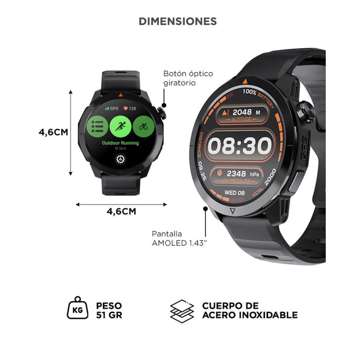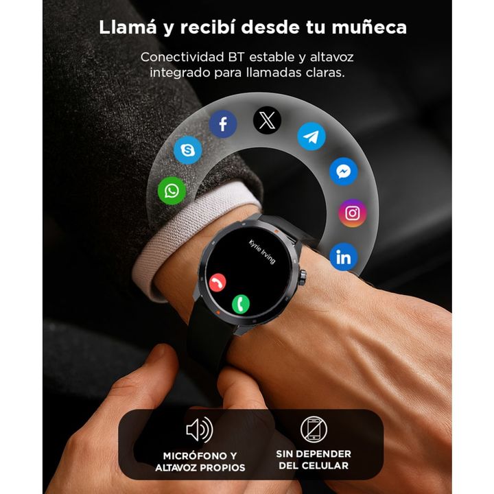Monitoreo 24/7 de salud: Sensor PPG de alta precisión. Mide tu ritmo cardíaco, oxígeno en sangre, sueño y estrés día y noche. Llamadas desde tu muñeca: Atendé y hablá sin sacar el celular. Conexión BT estable y altavoz incorporado. Pantalla AMOLED de alta definición: 1.43” y 466x466 px para una visu...
