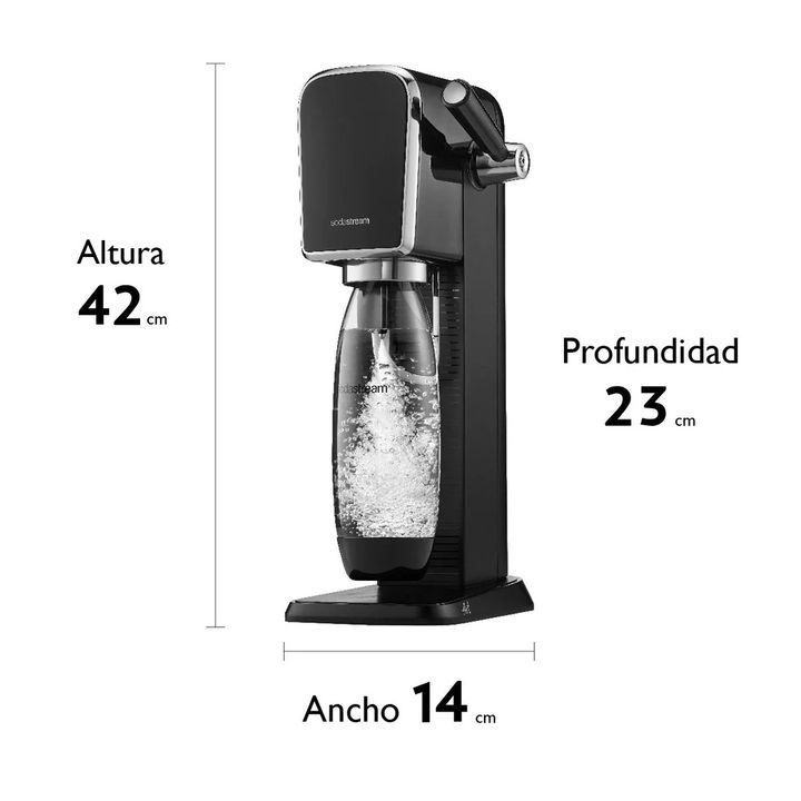 Máquina gasificadora de agua ART. Con la máquina ART, disfrutarás del arte de crear tu propia soda en casa. Con solo presionar la palanca, podrás convertir el agua normal en agua con gas y personalizarla a tu gusto. Nuestra máquina ART presenta un diseño de apariencia retro y una palanca de gasifica...