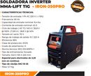 SOLDADORA INVERTER MMA IRON250-PRO Voltaje de entrada nominal: 220 V Capacidad de entrada: 7.7KW Rango de corriente: 10-180A Ciclo de trabajo nominal: 60% - 180A Voltaje de salida sin carga: 66 V Clase de protección: IP21S Clase de aislamiento: H Pantalla LCD Sinérgica auto regulable Arco forzado 50...
