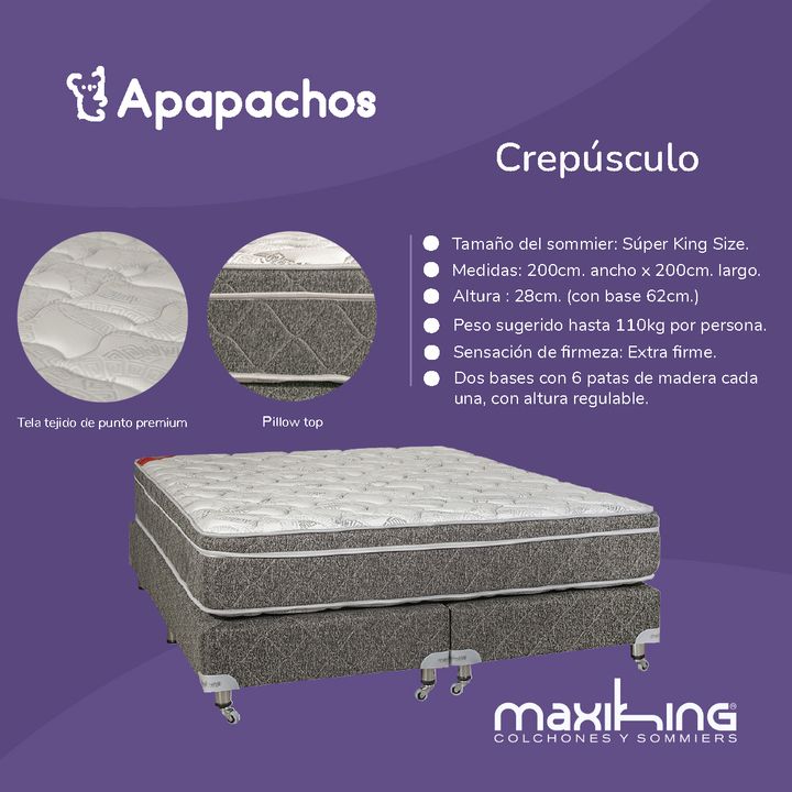 Sommier y Colchon Maxiking Crepusculo Super King 200x200x28cm Espuma de Alta Densidad Pillow Firme