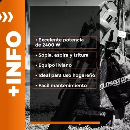 SOPLADORA ASPIRADORA LUSQTOFF 2400W TRITURA HOJAS SPL2400-8 Con tu sopladora Lüsqtoff SPL2400-8 podés eliminar la suciedad y mantener despejadas las áreas verdes, abiertas y otras zonas. Gracias a su calidad, limpia de manera práctica, efectiva y rápida una gran variedad de superficies. Su modo aspi...