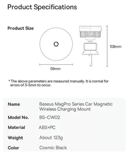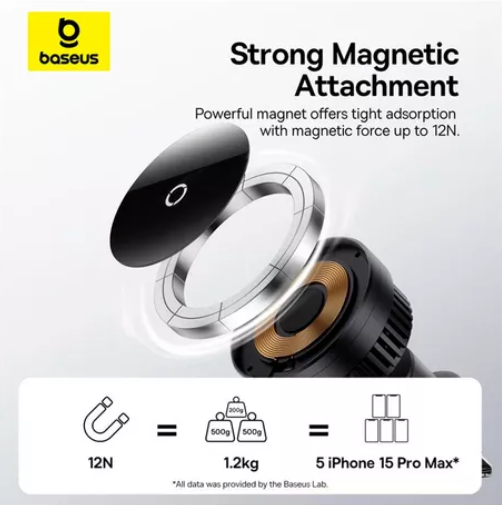 SOPORTE MAGNÉTICO DE AUTOMÓVIL CON CARGA INALÁMBRICA DE 15 W BASEUS MAG PRO. Descubre el Holder MagPro Black 15W Air, diseñado para la máxima comodidad y eficiencia en la carga de tu dispositivo. Con su potente carga inalámbrica de 15W, este soporte no solo sostiene tu smartphone de manera segura, s...