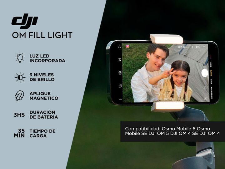 Acerca de Soporte Magnético Para Teléfono DJI OM Con Luz Led Regulable ¡Nuevo Soporte Magnetico para Teléfono Móvil! Diseño magnético con brillo y temperatura regulables Diseñada para tomas con poca luz, la abrazadera para teléfono con luz de relleno DJI OM presenta un diseño magnético para un monta...