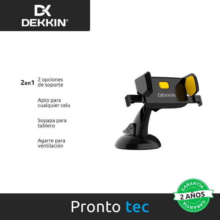 El práctico soporte 2 en 1 de Dekkin te permitirá llevar cómodamente tu celular en el auto. Con tres formas disponibles para que elijas el lugar más cómodo para vos, el tablero, la rejita de ventilación o el vídrio. APTO PARA TODOS LOS MODELOS Y MARCAS DE CELULARES CARACTERÍSTICAS: - Marca: Dekkin -...
