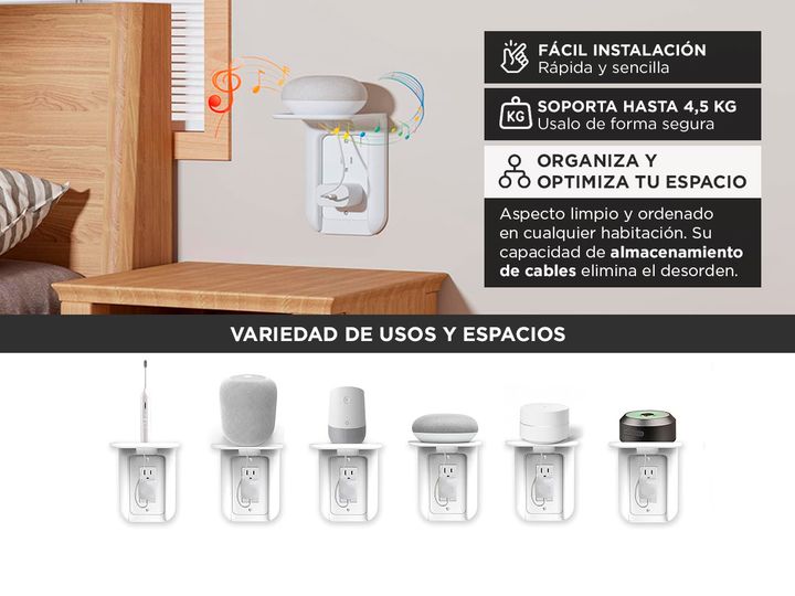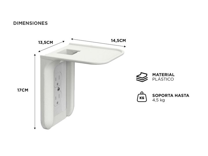 Organiza y optimiza tu espacio con nuestro práctico soporte para enchufes. Diseñado para ofrecer una instalación rápida y sencilla, este soporte garantiza un aspecto limpio y ordenado en cualquier habitación. Su capacidad de almacenamiento de cables integrado elimina el desorden, manteniendo los cab...