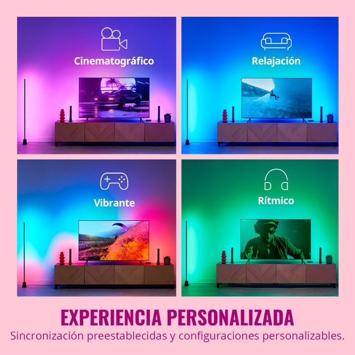 Mejora el entretenimiento con la proyección de los colores de la pantalla de tu televisor en tiempo real. La tira RGBIC combina colores brillantes con la velocidad de iluminación para películas, video juegos o música. Disfruta de una instalación sencilla y una sincronización de colores precisa media...