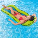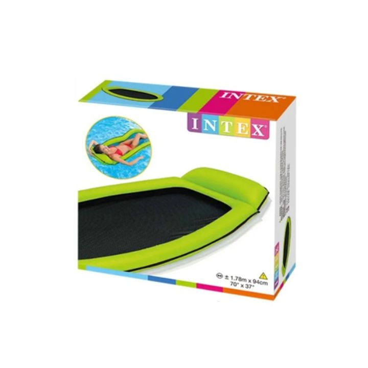 Colchoneta inflable Intex diseñada con el fondo de rejilla para que pase el agua. La colchoneta está envuelta en tela para mayor durabilidad. Dispone de almohada y 2 cámaras de aire. Medidas: 178x94 cm
