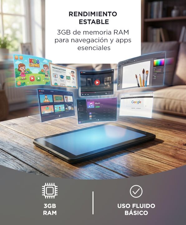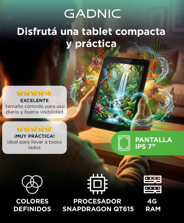 Pantalla IPS de 7 pulgadas para una visualización clara y portátil La Tablet Digital Gadnic 7” incorpora una pantalla IPS de 7 pulgadas con resolución 1024×600 que brinda buena visibilidad para lectura, videos y navegación. Su tamaño compacto facilita el uso diario y el transporte, adaptándose a dis...