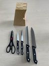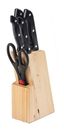 Taco de Cuchillos 6 piezas Taco de madera - Tijera (Largo total: 21 cms). - Cuchillo de chef (Largo total: 33 cms. Mango: 13cms. Cuchilla: 20 cms). - Cuchillo para rebanar (Largo total: 23 cms. Mango: 11 cms. Cuchilla: 12 cms). - Cuchillo para pelar: (Largo total: 20 cms. Mango: 11,5 cms. Cuchilla: ...