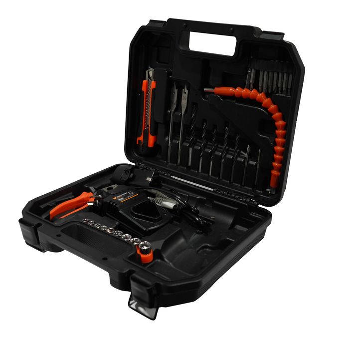 Ficha técnica: -Voltaje: 12 V -Potencia: 2.0 A -Velocidad: 710 Rpm -Mandril autoajustable: 1-10 mm -Torque máximo: 23 Nm -Peso: 3,0 Kg INCLUYE: - 2 baterías - 1 flexible - 1 cutter - 1 pinza - Juego de tubos de 5 mm a 13 mm - 9 mechas: 2 para cerámico, 2 para metal, 3 para madera y 2 mechas paleta -...