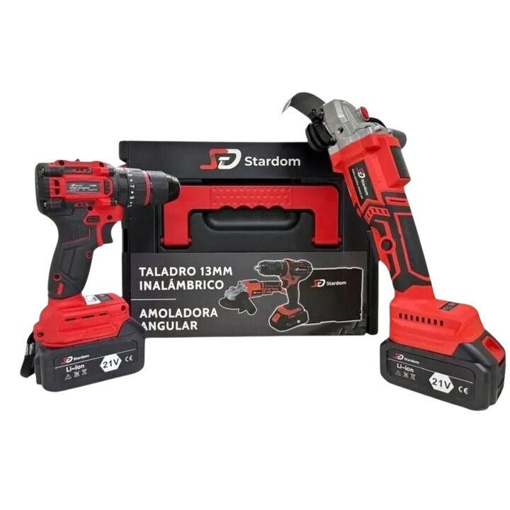 Combo Taladro + Amoladora Amoladora: Marca Stardom Modelo BLT115 Diámetro Disco Max 115mm Rosca De Eje De Trabajo M14 Origen China Taladro: Marca Stardom Modelo H-3002 Par De Torsión Máximo 35Nm Velocidad Sin Carga 1400 rpm Origen China