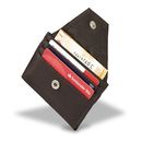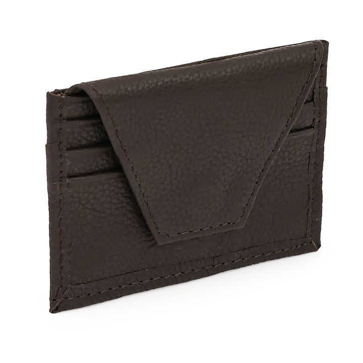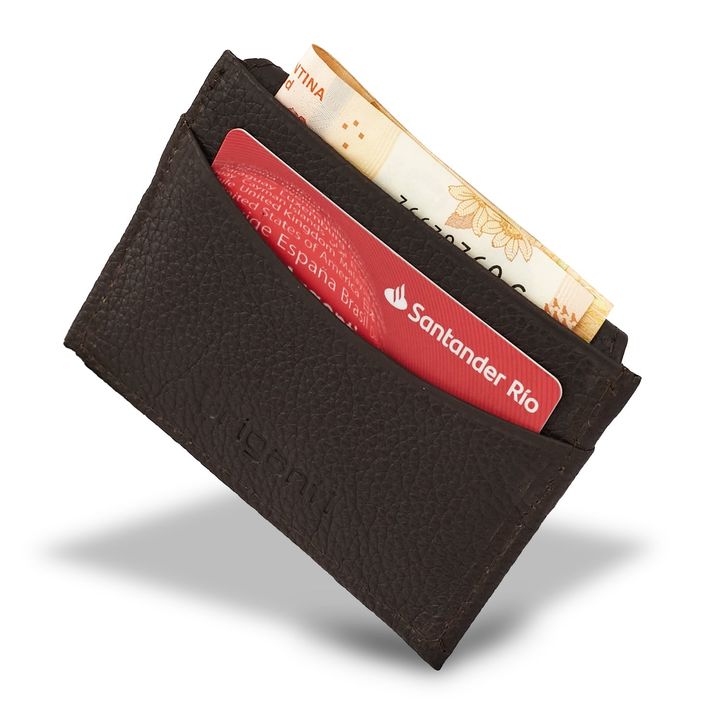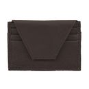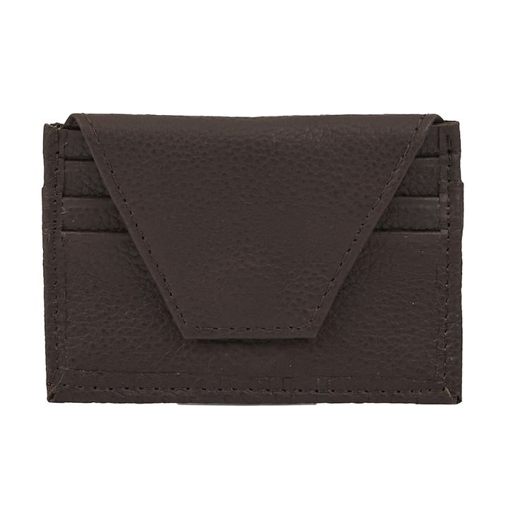 Tarjeteros Nice confeccionados con cuero chocolate de primera calidad. Es un modelo resistente al desgarro y a la abrasión húmeda y seca. Cuanta con solapa con botón y capacidad para 5 tarjetas. - Marca. Briganti - Material Interno: Cuero - Material Externo: Cuero - Articulo: UMBI62045 - Alto: 7,5 c...