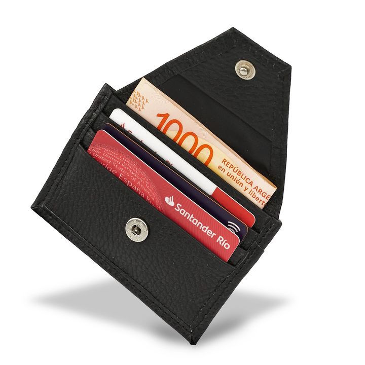 Tarjeteros Nice confeccionados con cuero chocolate de primera calidad. Es un modelo resistente al desgarro y a la abrasión húmeda y seca. Cuanta con solapa con botón y capacidad para 5 tarjetas. - Marca. Briganti - Material Interno: Cuero - Material Externo: Cuero - Articulo: UMBI62045 - Alto: 8 cm....