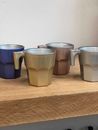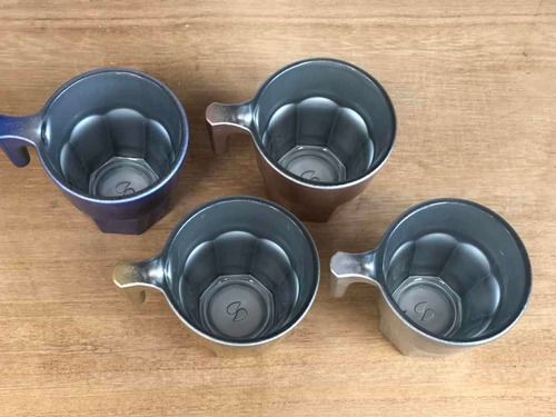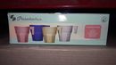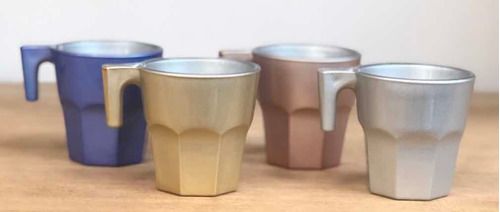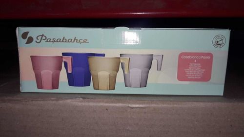 Set x 4 tazas en vidrio color ( exterior) PASABAHCE Vidrio Templado Capacidad : 70 cc Medidas : Alto de la taza : 6 cms. / Diametro de la boca : 5,3 cms. / Diametro de la base : 3,8 cms Base tiene 8 lados , la boca es redonda (ver fotos) Color : 1 dorado , 1 plateado , 1 rosa pastel , 1 azul pastel....