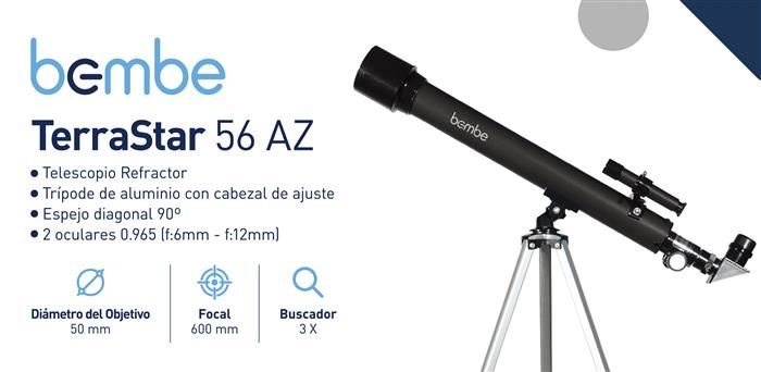 Refractor con lente de 50mm de diámetro y 600mm de distancia focal.