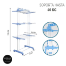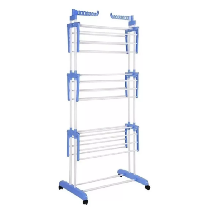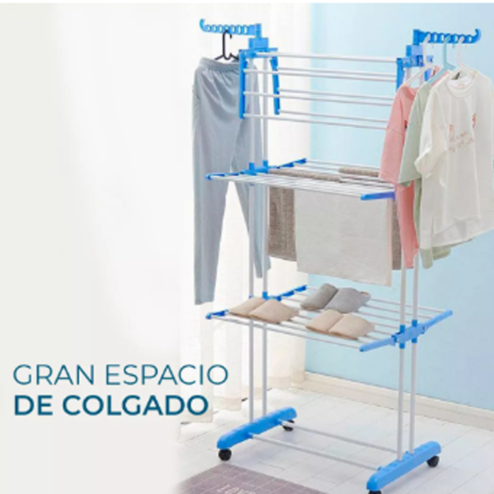 HOGAR ACTUAL TENDER VERTICAL REFORZADO CON RUEDAS 3 NIVELES SKU: 142958 Características: • Reforzado de caño pintado blanco y plástico celeste. • Incluye 2 barras laterales plásticas o perchero, ideales para colgar camisas y prendas pequeñas. • Su gran tamaño supera los tender convencionales y es id...