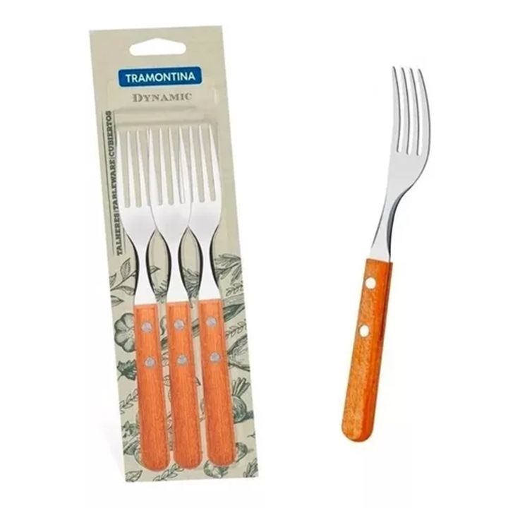 Juego de cubiertos Dynamic Tramontina con Láminas de Acero inoxidable y mangos de madera natural.